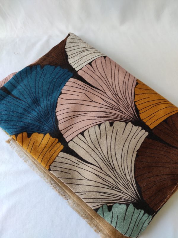 Foulard éventails beige turquoise / rose / jaune / marron