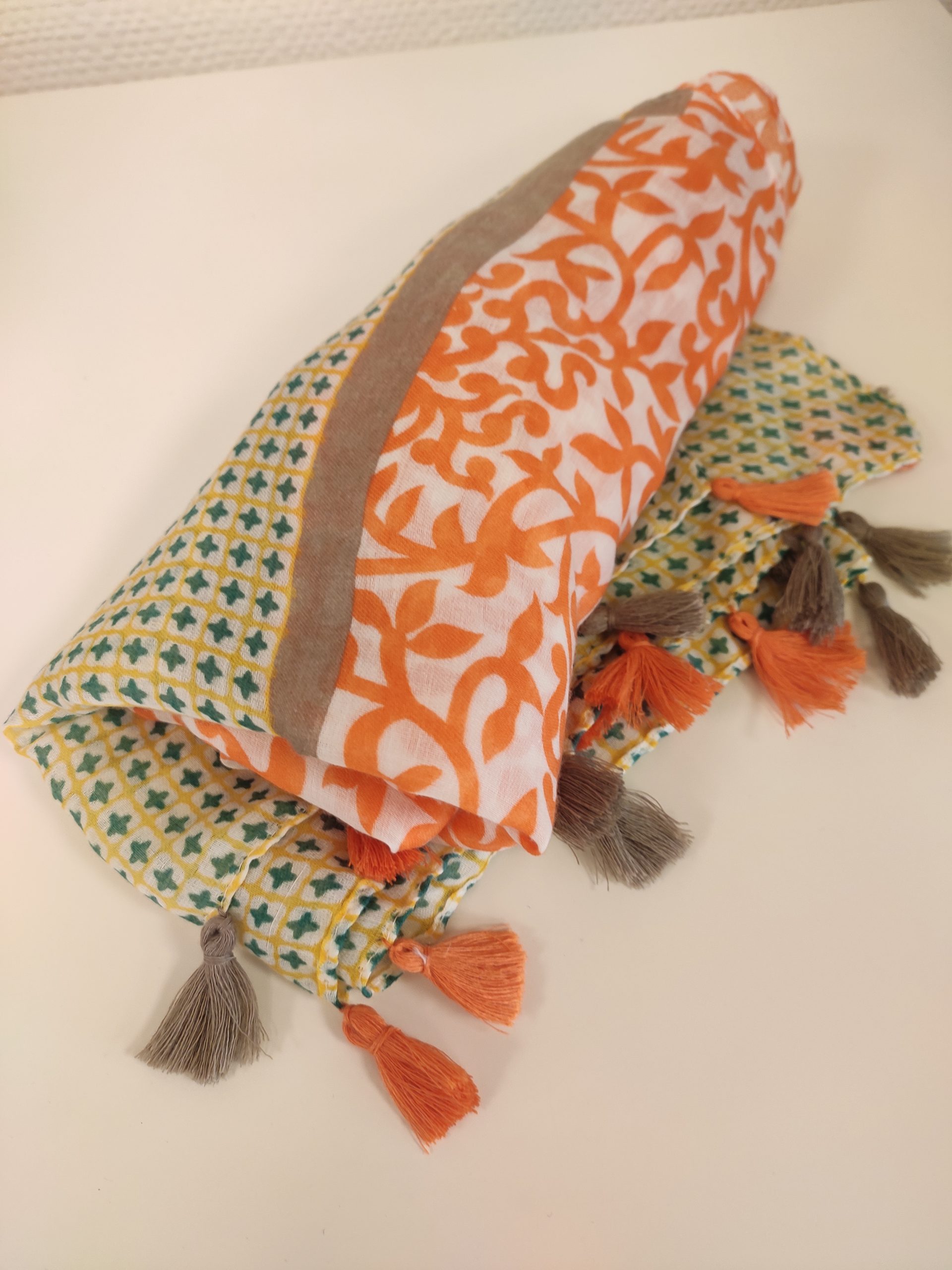 Trouver la boutique La boutique en ligne est fermée ! Retrouvez moi en magasin pour trouver encore plus de bonnes idées ! Foulard pastel jaune orange18,00€ Catégorie : Foulards Description Informations complémentaires Description Foulard jaune pastel, imprimé rétro bleu, fleurs orange + pompons Fluide, doux et agréable ! Informations complémentaires Poids 120 g Catégorie Femme Produits apparentés EpuiséFoulard orange nid d’abeille 18,00€ Lire la suite EpuiséFoulard marron motifs pois noir 18,00€ Lire la suite EpuiséFoulard kaki motifs géométrique beige 18,00€ Lire la suite EpuiséFoulard rouille uni confettis dorés 18,00€ Lire la suite